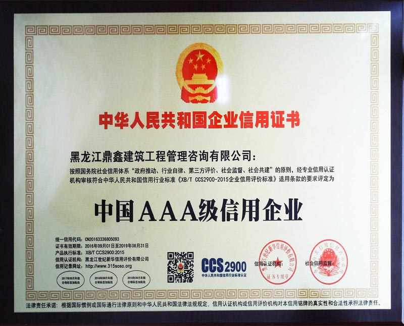 • 中國AAA級信用企業證書